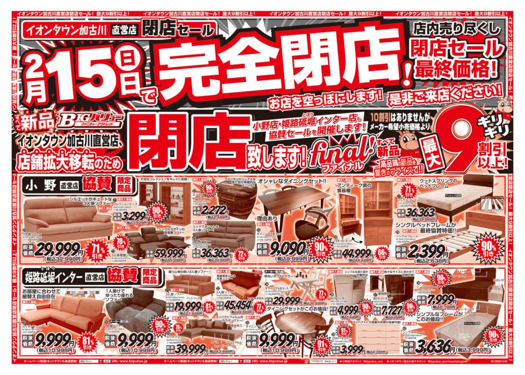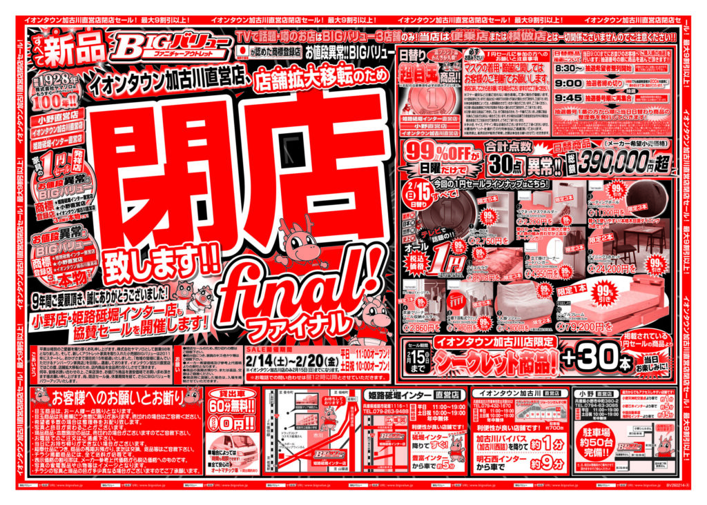 イオンタウン加古川店、2/15(日)で完全閉店!