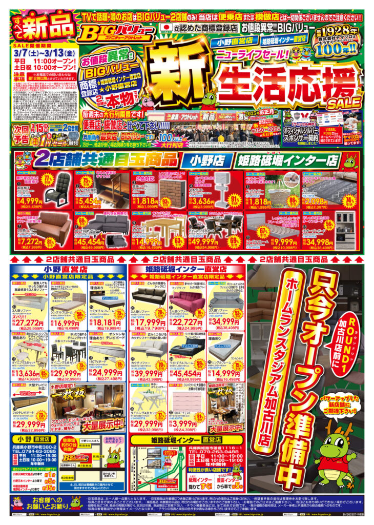 BIGバリュー実店舗へのお問合せはご遠慮くださいませ。