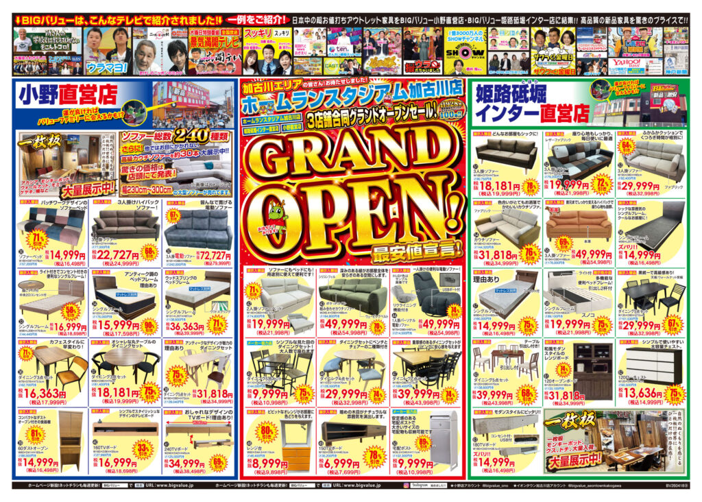 3店舗合同グランドオープンとしてチラシ商品はもちろん、それ以外にも大変お値打ち価格の商品を